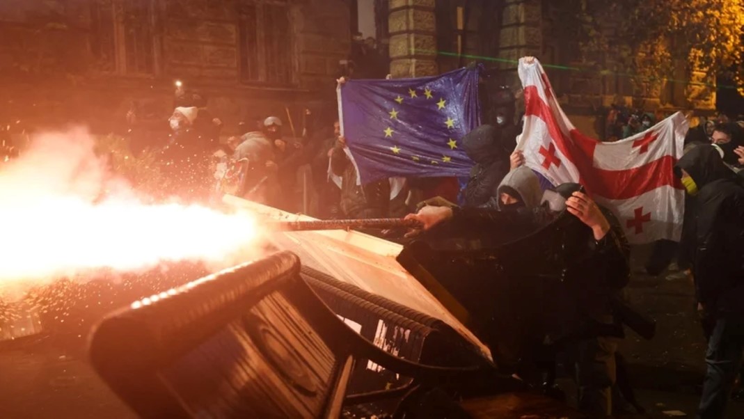 საქართველოს დედაქალაქში ევროკავშირის მომხრეებსა და მთავრობას შორის დაძაბულობა მწვავდება, ქუჩებში შეტაკებები მიმდინარეობს. დემონსტრანტებმა მოახერხეს პარლამენტის შენობის ზოგიერთ ოთახში შეჭრა და დარბევა, ნაწილი კი გადაწვეს. არიან დაშავებულები, დაკავებულია ათეულობით ადამიანი, მათ შორის, აქციების უცხოელი მონაწილეებიც. ქვეყნის პრეზიდენტმა განაცხადა, რომ თანამდებობას არ დატოვებს, სანამ „ლეგიტიმური“ პარლამენტი არ იქნა არჩეული. პრემიერ-მინისტრმა ევროკავშირი შანტაჟში დაადანაშაულა და განაცხადა, რომ ბრიუსელი ქვეყნის წევრად მიღების მოლაპარაკებებით თბილისზე ზეწოლას ახორციელებს.