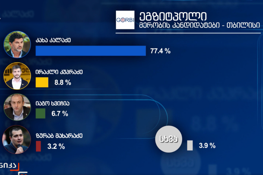 „იმედის“ მიერ ჩატარებული ეგზიტპოლის შედეგებით მიხედვით, თბილისის მერის არჩევნებში კახა კალაძემ ხმების 77.4%, ირაკლი კუპრაძემ კი 8.8% მიიღო