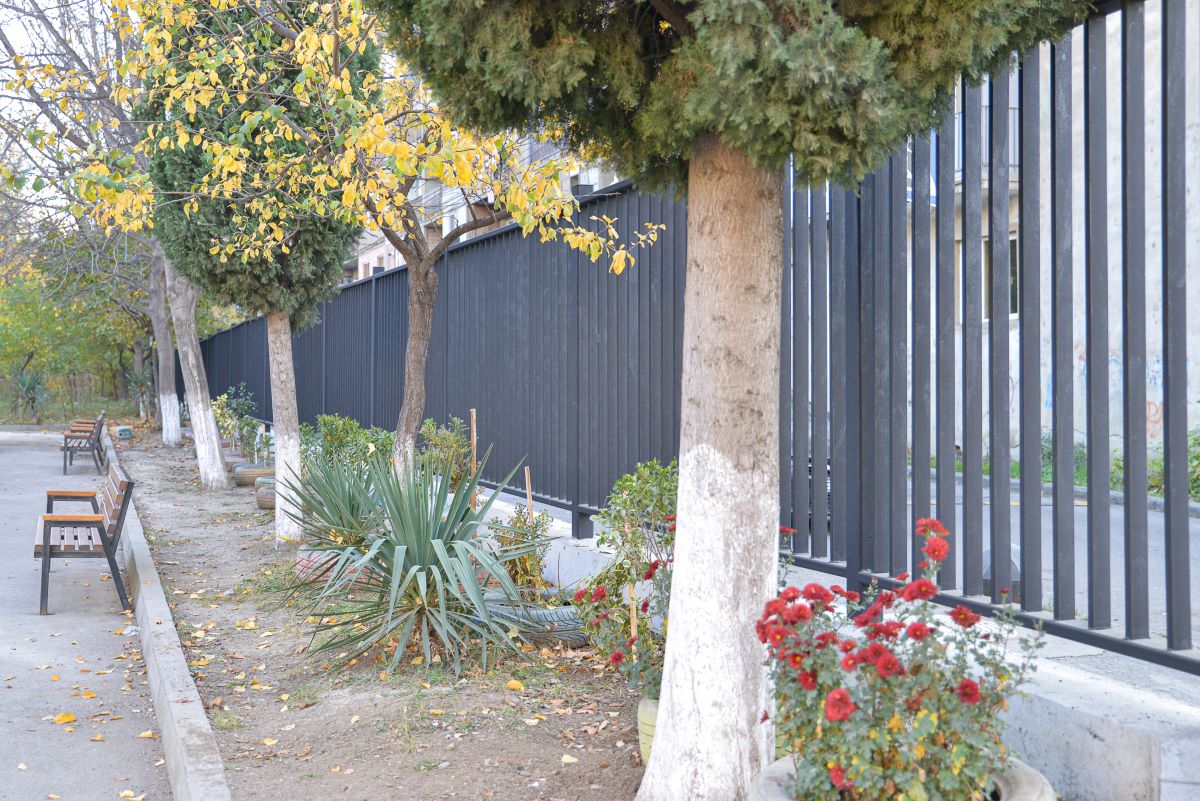 142-ე საჯარო სკოლის ეზოში უსაფრთხოების ღობის მოწყობის სამუშაოები მიმდინარეობს