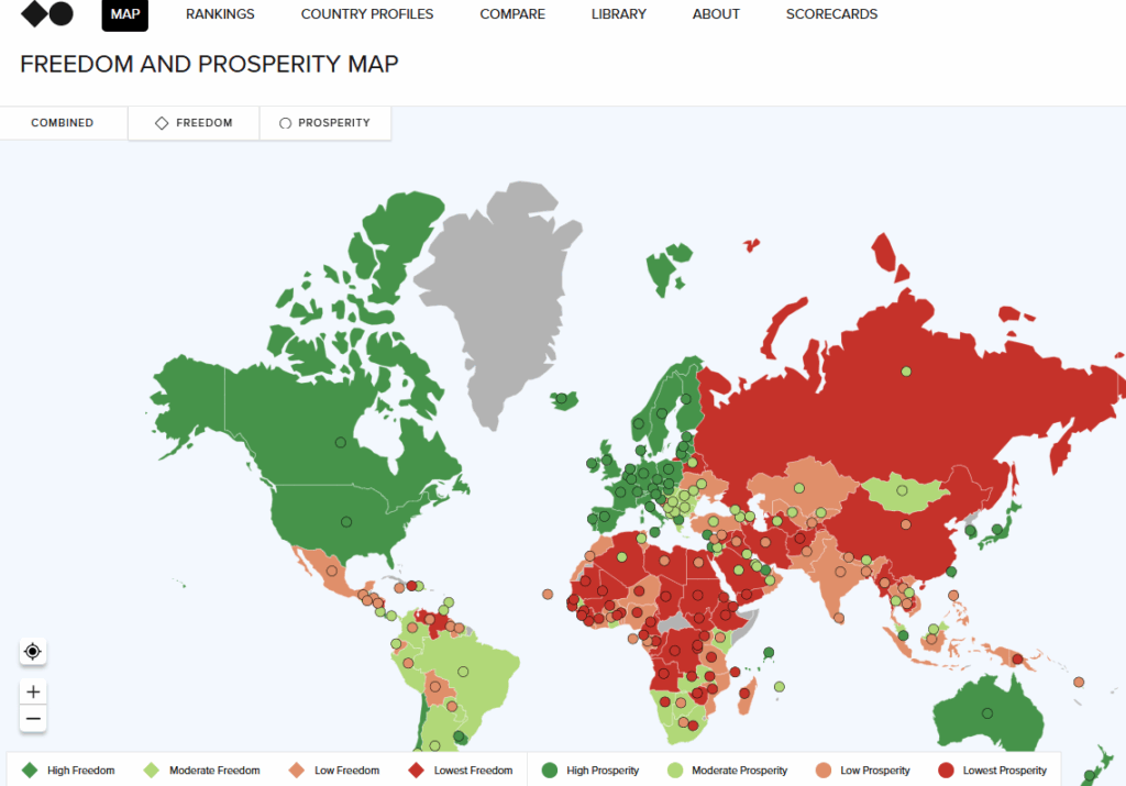 თავისუფლების და კეთილდღეობის ინდექსებს „ატლანტიკური საბჭოს“ თავისუფლების და კეთილდღეობის ცენტრი აწარმოებს და ძირითადად ეფუძნება მსოფლიო ბანკის გლობალური მმართველობის ინდიკატორების, გაეროს, ამერიკული ორგანიზაცია ჰერითიჯ ფაუნდეიშენის და ორგანიზაცია „დემოკრატიის მრავალფეროვნების“ დეტალურ საერთაშორისო კვლევებს, მეცნიერულ ექსპერტიზას და აგრეგირებულ ინდექსებს.